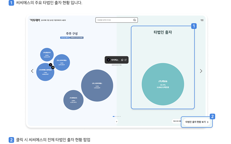 | ㈜비즈테크온 | 2022.07.01 | 경영참여 | 2,158,849 | 96.09 | 2,084,000,000 | 16,320,000,000 | 1,903,000,000 |